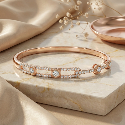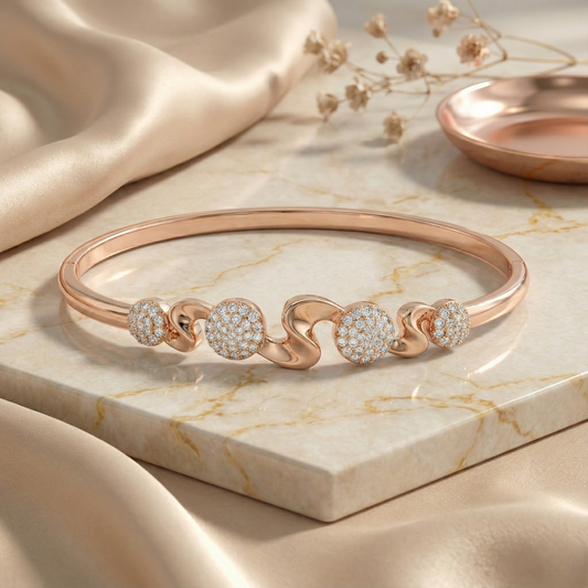 Rose gold wave disc pave bracelet
