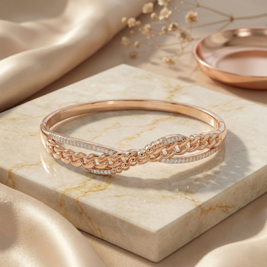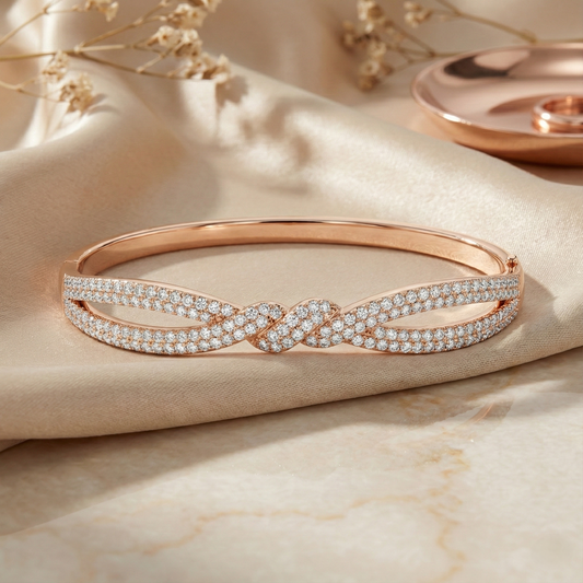 Rose gold infinity twist pave bracelet