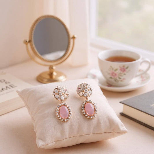 Moissanite motif earrings in pastel pink