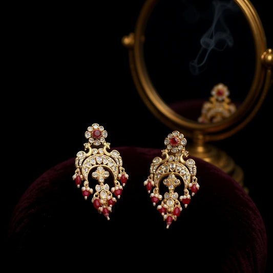 Red drops & polki accent earrings