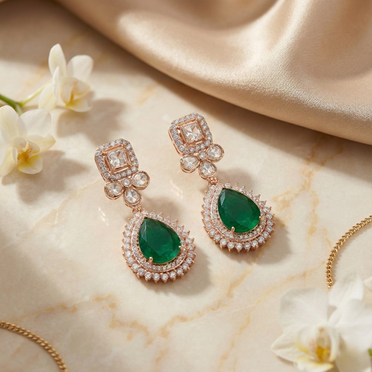 Moissanite & emerald royal chandbalis