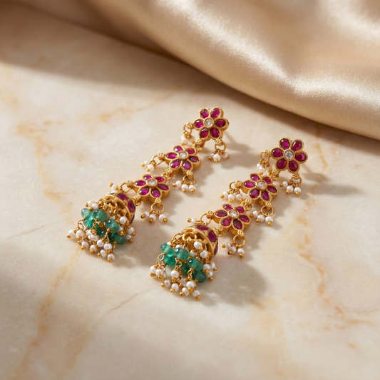 Floral cascade jhumka earrings